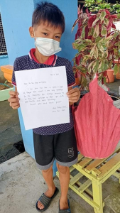 “I am Jeric San Jose, a grade five pupil of Dugcal Elementary School. I am grateful for the blessings you always shared to us. May God continue to bless you with good health and more blessings . Thank you and more power.”