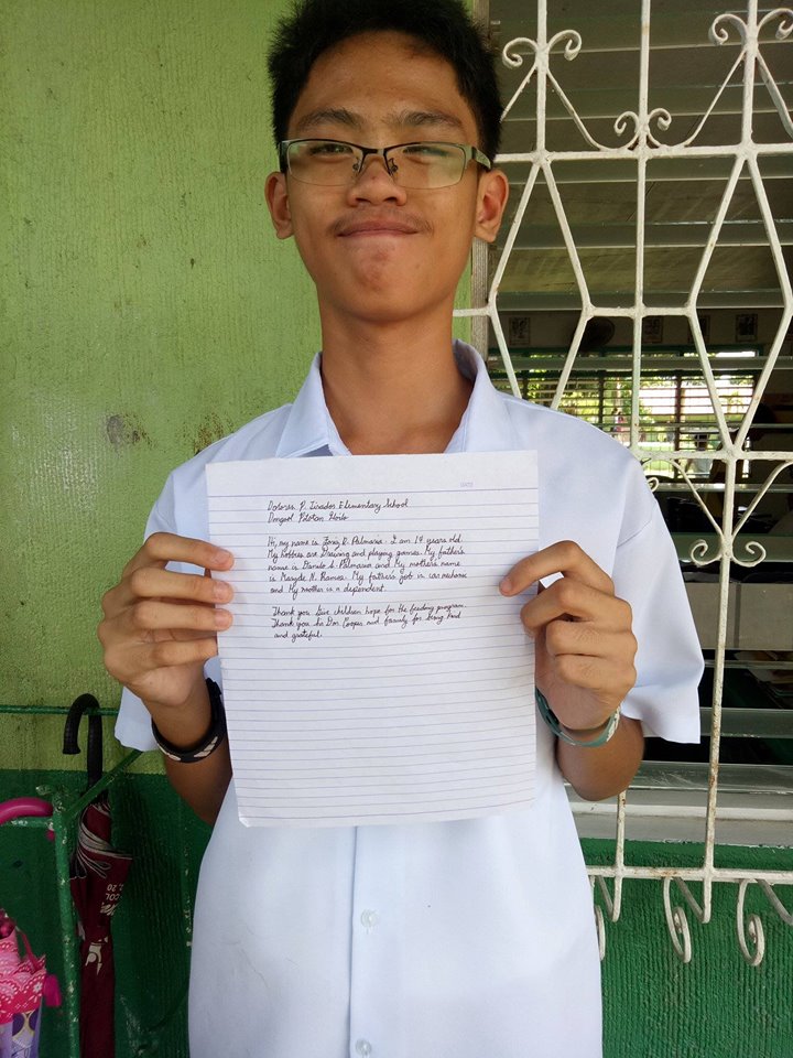 I love to see the kids so happy and they always show how grateful they are to have the food. A child who gets food and a great education will become a leader. Thanks to the Teachers of Dolores elem school. Thanks Foriz Palmaria for going to school. This is the newest school Give Children hope [...]