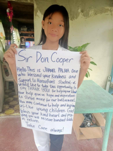 Thank you for giving Jhamel and all the children the motivation to strive more for a better life.