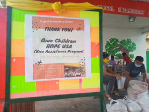 Thirty-one sacks of rice were delivered to the school last June 26 and each of the 541 students brought home 3kilos of rice. The bags of rice were received by the parents and they are expressing how great this help is to their families. All the school teachers, principal, parents, and Give Children Hope volunteers help in the purchase, preparation, and distribution. The event went smoothly and was a success. There are three more schools to receive rice and we will update you as it happens.
