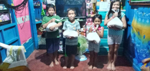 There are three more schools to receive rice and we will update you as it happens. Pictured here as well are four students from Dugcal Elementary School namely (L-R) : Jhun Cris Asico -Grade 5, Nathaniel Oblino – Grade 3, Mary France Oblino -Kinder, and Francine Lopez -Grade 5. Each bag of rice that they brought home was a big help for their families and they would like to express their gratitude to all of you.