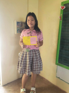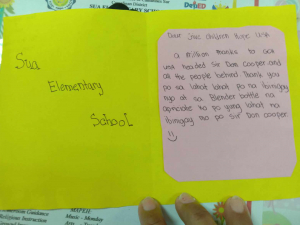 Likewise, Jellian T. Hamily of Sua Elementary School would like to express her gratitude and appreciation for the things that Give Children Hope has done and given to her and the students of her school. Aside from the daily hot meals, she remembers and cherishes all the items she has received from Give Children Hope sponsors throughout the years.