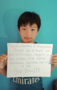 Meanwhile, here is Prince Lawrence Asaytono and he wants to thank you all for your continuous support to all the sponsored schools. He is a witness that your every donation is a big help to all the children, their families, and their schools.