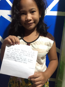 Here is Rei Anthonett, a 5th grader from Sua Elementary School who wants to express her gratitude to all of you.