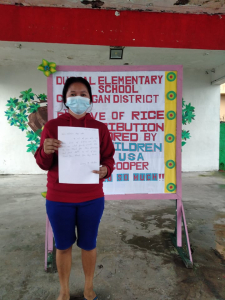 And on behalf of the grateful parents, Jenny Abellon, whose children are studying at Dugcal Elementary school, is very grateful for all your help. Her family was able to receive bags of rice during the height of the pandemic and her children continue to receive meals from the daily Meals at School program. She wishes you more blessings and good health.