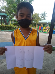 Also, Nathaniel Rodriguez from Sua Elementary school has a short but profound “Thank you” for you all. The students at Sua Elementary have been receiving daily meals for many years and bags of rice under the rice distribution program when the school closed for a time due to the pandemic.