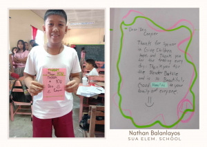 On the other hand, Nathan Balanlayos wants to express his gratitude to all of you for your generosity and for bringing the daily meals to their school. He is also thankful for the Blender Bottles sent to his school. This item is indeed very useful for all the students.